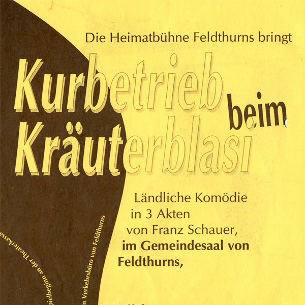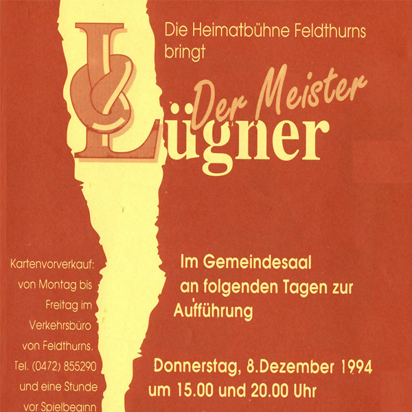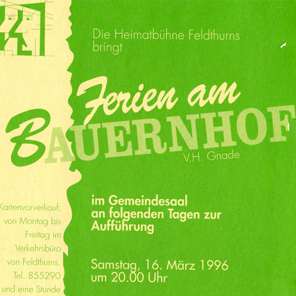 Bereits kurz vor der Gründung brachten die zukünftigen Mitglieder der Heimatbühne ihr erstes Theaterstück „Alles in Ordnung“ auf die Bühne. Von da an präsentierte der neue Verein jährlich (manchmal sogar zweimal jährlich) ein neues Stück und wurde schon bald Treffpunkt zum Lachen für die Feldthurner.